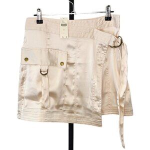Anthropologie Silky Utility Cargo Mini Skirt Pink Wrap Size 6 NWT