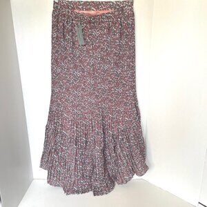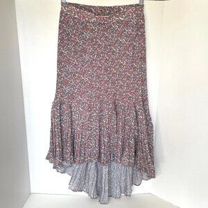 Anthropologie Skirt Womens Medium Petite Pink Midi Floral Chiffon Asymmetric Hem