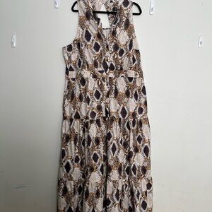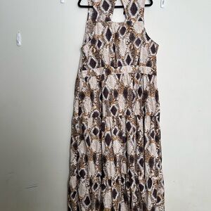 Stylish maxi dress with a snake print design. Sleeveless with a halter neckline. Perfect for casual outings. Measurements and additional information can be found in the last few photos.