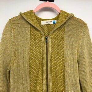 Anthropologie Sparrow Yellow Zip Up Hooded Knit Sweater size M