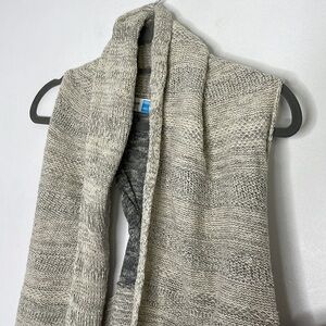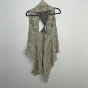 In great condition. 66% cotton 19% linen 15% nylon. Hard to show in pictures. Sleeveless open front waterfall style cardigan. Twist contrasting back. High low. Can fit various size. Measure approximately; bust 16,5'' longest length 33'' shortest length 23,5''.