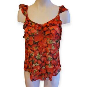 Anthropologie Strawberry Print Sleeveless Cotton Top Summer Blouse Size 6