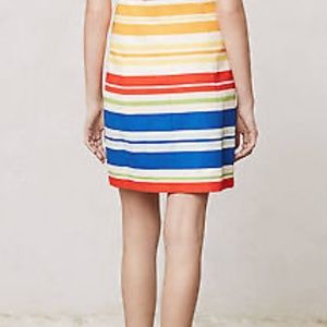 Ending just above the knee, this shift dress features a delicate red embroidered design on top of colourful stripes. Perfect for summer.