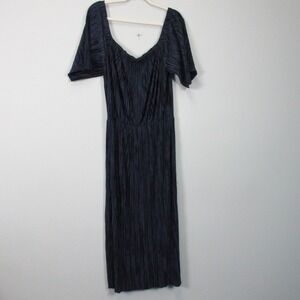 Anthropologie Sunday in Brooklyn Pleated Maxi Dress L Blue Off Shoulder 408