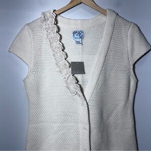 Anthropologie Tabitha 100% Wool Cream Knit Vneck Cap Sleeve Cardigan Size Large