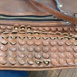 Chic tan shoulder bag with unique textured pattern. Features zipper closure and adjustable strap. Ideal for daily wear. 13” x9” inches. 😎