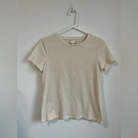 Anthropologie Textured Cream Off White Woven Tee T-Shirt Boho