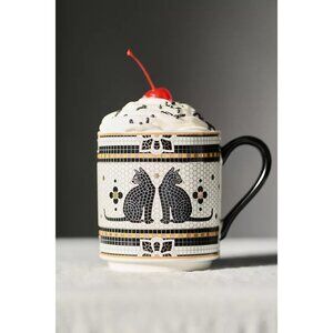 Anthropologie The Bistro Tile Stoneware Coffee Mug: Halloween Edition Cats
