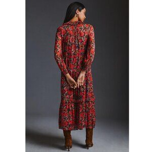 Anthropologie The Marais Printed Chiffon Maxi Dress in Red Motif.