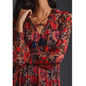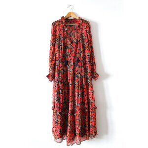 Anthropologie The Marais Printed Chiffon Maxi Dress / Large / Red Motif Floral