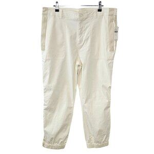 Anthropologie The Richie Slim Joggers Size 14 White Cotton Twill Tapered Leg NWT