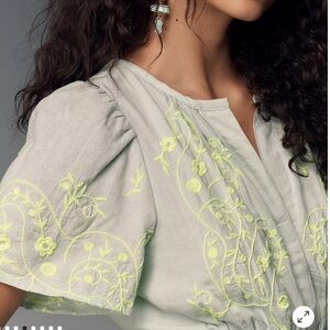 Anthropologie The Somerset Mini Dress Embroidered Linen Edition Size Small Colour Mint green, highlighter Green/yellow!! Stretchy waistband and pockets!!! Embroidered Shell 55% linen 45%viscose Lining 100% cotton