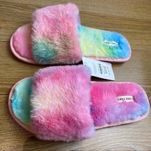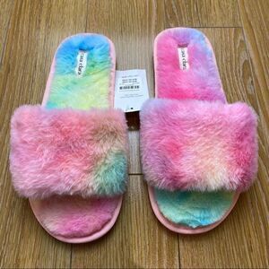 Anthropologie - Tie Dye Fuzzy Slippers (Size:38-39)