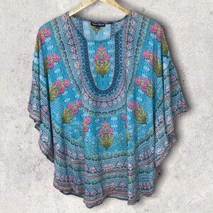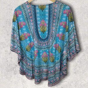 Anthropologie Tolani Bohemian Print Kimono Top in Women's Size XS Petite. Oversized fit. Drape sleeves. Perfect as a beach coverup or also just as a festival top. 100% modal. Made in India. Machine washable. Very good pre-loved condition. No visible flaws.