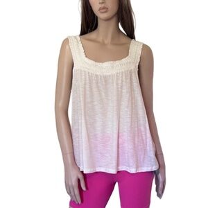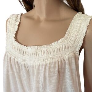 Anthropologie Top Tank Blouse Shirred Smocked Cotton Modal Sleeveless Ivory NWOT