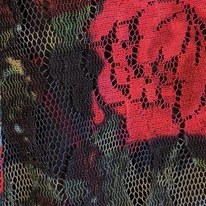 Tracy Reese for Anthropologie Size 2 Noisette dress. This gorgeous midi length fit and flare dress features red, blue and green floral lace over black lining and tulle petticoat. This designer dress is sleeveless and has a tank top with scoop neck. It has a back zip, black slip, and black satin and tulle petticoat underneath that gives it volume. Retro vintage old school glamor! So stunning, elegant and sophisticated....