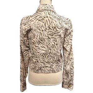 Anthropologie Trucker Crop Denim Jacket Womens Medium White Pilcro Animal Print