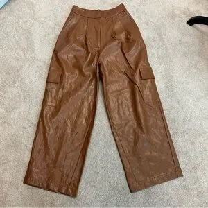 Anthropologie Twentysixhundred Brown faux leather cargo utility wide leg pants