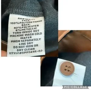 Zipper, metal hook and button closure (inside button is missing, but there is an extra one attached to the tag on the inside as pictured) bottom hook is a little bit loose