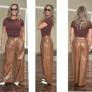 #fauxleather #cargppants #utilitypants #camelbrown #pleatherpants #veganpants #pleatedpants #veganfashionj #adjustablehem