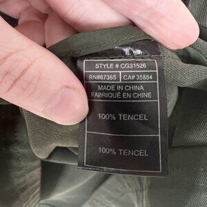 Features: Button and zip front closures, front patch pockets interior drawstring waist, collar