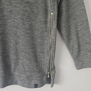 Stylish grey ribbed, heavyweight sweater featuring side zippers.