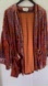 Beautiful bohemian jacket in rich autumnal hues (shades of terracotta & purple). Tops off any outfit so nicely - from jeans & a tee to layered over a slip dress for evening. Effortless but luxe! It has two front pockets & an open front.