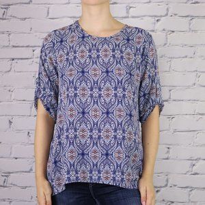 Anthropologie W5 blue paisley high low blouse
