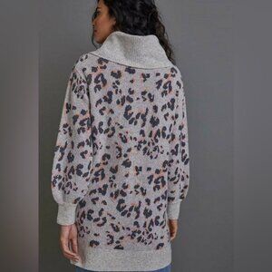 Anthropologie Women's Emmy Cowl Neck Leopard Print Oversized Sweater Size XS
