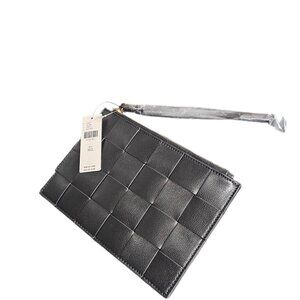 Anthropologie Woven Wristlet Wallet - Polyurethane Small Bag, Black, NWT