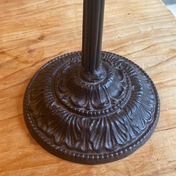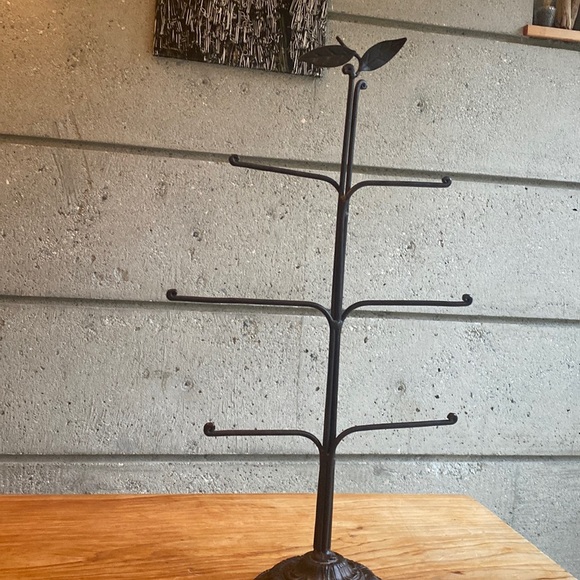 Beautiful details on this wrought iron jewelry stand from Anthropologie. I’ve loved it but am minimizing and am ready to let items go and connect with new owners to enjoy and use. Base is roughly 6.5” diameter and it’s about 21.5” tall. Fairly heavy so will not be able to combine with other heavy items in a bundle sorry. Fits a lot of jewlery or sunglasses on it.