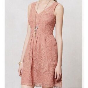 Keywords: Anthropologie dress, Yoana Baraschi, blush lace dress, embroidered mesh, fit and flare, wedding guest, party dress, boho, vintage-inspired