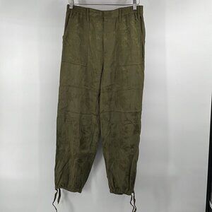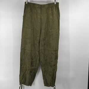 Anthropologie army green floral jogger pant viscose career casual comfy sz xs