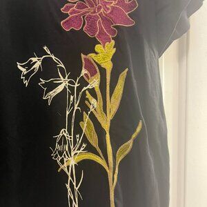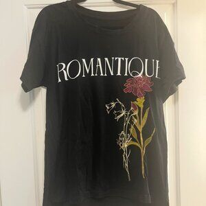 It has the word "Romantique" on it and pretty embroidered flowers. It's in excellent condition. It's such a cool t-shirt!