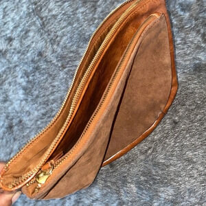 🤎carry all multiple pockets Anthropologie brown zipper pull pouch bag approx measurements we’ll worn exterior stain flaws photographed same day shipping from smoke free home