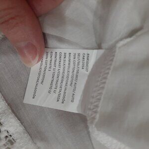 Anthropologie Tiny brand blouse that has a boho feel and is longer to wear as tunic or over a dress as well. Excellent condition. Beautiful croquet detail and has a high low cut so longer in the back, with slits on the side. Buttons down the front and you can wear it so many ways! (see photos)