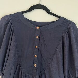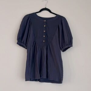 Anthropologie elinor Navy Blue Button-Up Women's Top small
