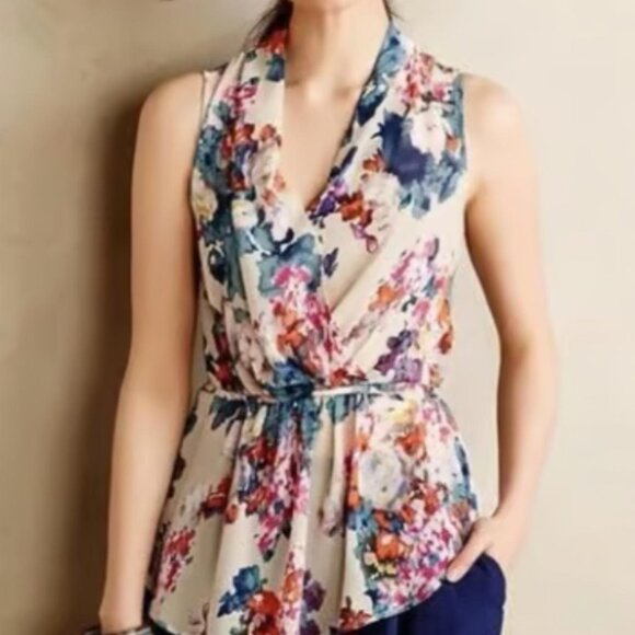 Anthropologie floral sleeveless blouse