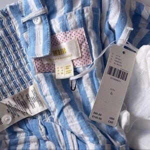 Anthropologie Maeve Striped Embroidered Cami Womens. New with tags. Blue and white striped bodice style top with embroidered strawberries. Zip up side with removable straps that can also be crisscrossed. Perfect summer piece!