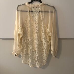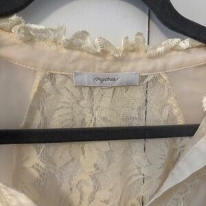 Anthropologie mystree Chiffon High Low Sheer Lace Blouse