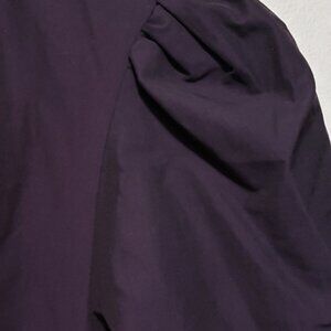 Aubergine colour, fully lined. Size 12, 40" long, 12" long sleeve (under arm), 17" waist, 18"/19" under arm width, 15" shoulder width.