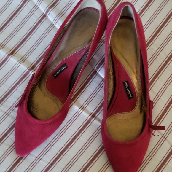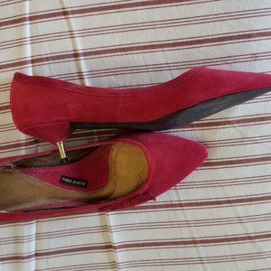 Red suede shoes with a pointed toe and kitten heel. Perfect condition, never worn.