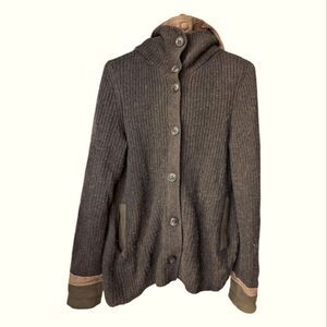 Anthropologie sleeping on snow Mocha Brown Wool cardiganwith removable hood sz s