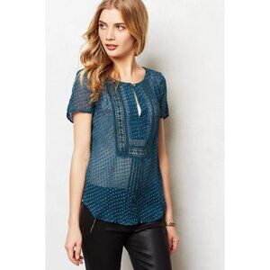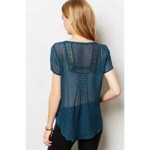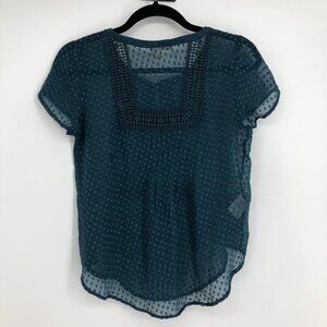 Anthropologie teal Grassland short sleeve sheer blouse Silk blend size XS