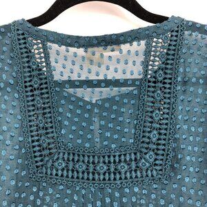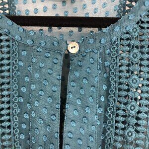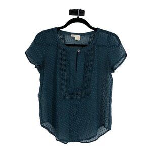 Anthropologie teal Grassland short sleeve sheer blouse Silk blend size XS