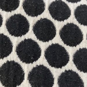 Cute black and white polka dot blazer from Anthropologie (the brand is called Liefnotes). Very good condition, no exterior stains, rips, etc. Some very minor, almost negligible pilling (see photo). On the inside, in the armpit areas, there is some slight discolouration where the black colour of the fabric has become a bit faded (see photos).