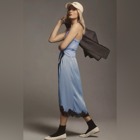 Anthropologie the Keeley Twofer blue lace trim midi dress NWT S