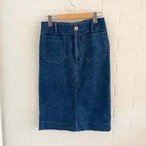Anthropologie x Maeve Denim Pencil Skirt Dark Wash Pockets Cotton Stretch Sz XS