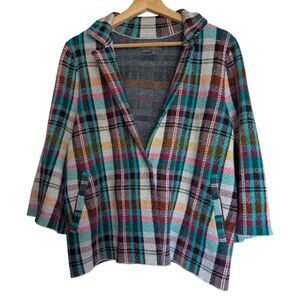 Anthropologie Blue Plaid Cardigan Blazer Size M