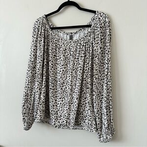Anthropologie-Cascias Leopard Print Off Shoulder Top (Size:Large)